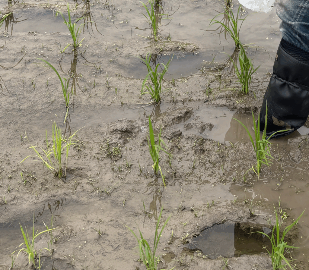 5月24日 草取り隊 メンバー増加中! 2025 9/17 Rice Field 2025年7月7日2025年9月17日 写真ではパッと見わからないですが、草が着実に勢力拡大中です。そこへ新しくメンバーが増えました。頼もしい限りです! 田んぼも感激してギュッとしてくれました🙈💦 油断大敵、草茫々 にならないよう頑張っていきます! Rice Field #アキアカネ #カメムシ #コナギ #チェーン除草 #ひえ #京北 #休耕田復活 #出穂 #天日干し #田んぼ除草 #目指せ豊作 #稲木干し #稲架掛け #米作り #草取り #除草剤不使用 #雑草マルチ よかったらシェアしてね! URLをコピーしました! URLをコピーしました! 5月22日 たけくらべ 稲も、雑草も、成長中 5月25日 京北の田んぼ チェーン除草進化版 進化していくぜぇ~ この記事を書いた人 oneteam_keihoku 関連記事 11月30日 京北の田んぼ 来年に向け進化中! 2025年11月30日 11月24日 京北の田んぼ 来年は耕作面積が倍以上に!😮 2025年11月24日 9月23日 収穫祭にご来場ありがとうございました! 2025年9月24日 収穫祭開催決定! 参加お待ちしています!! 2025年9月11日 9月7日 稲刈りしました! 豊作の予感!? 2025年9月9日 8月31日 収穫前、ラストスパート( 今日も暑い~ 最強かも トンボは元気一杯!) 2025年8月31日 8月28日 京北の田んぼ ひえ退治(3日目) 2025年8月28日 8月24日 京北の田んぼ ひえ退治(1日目) 2025年8月24日