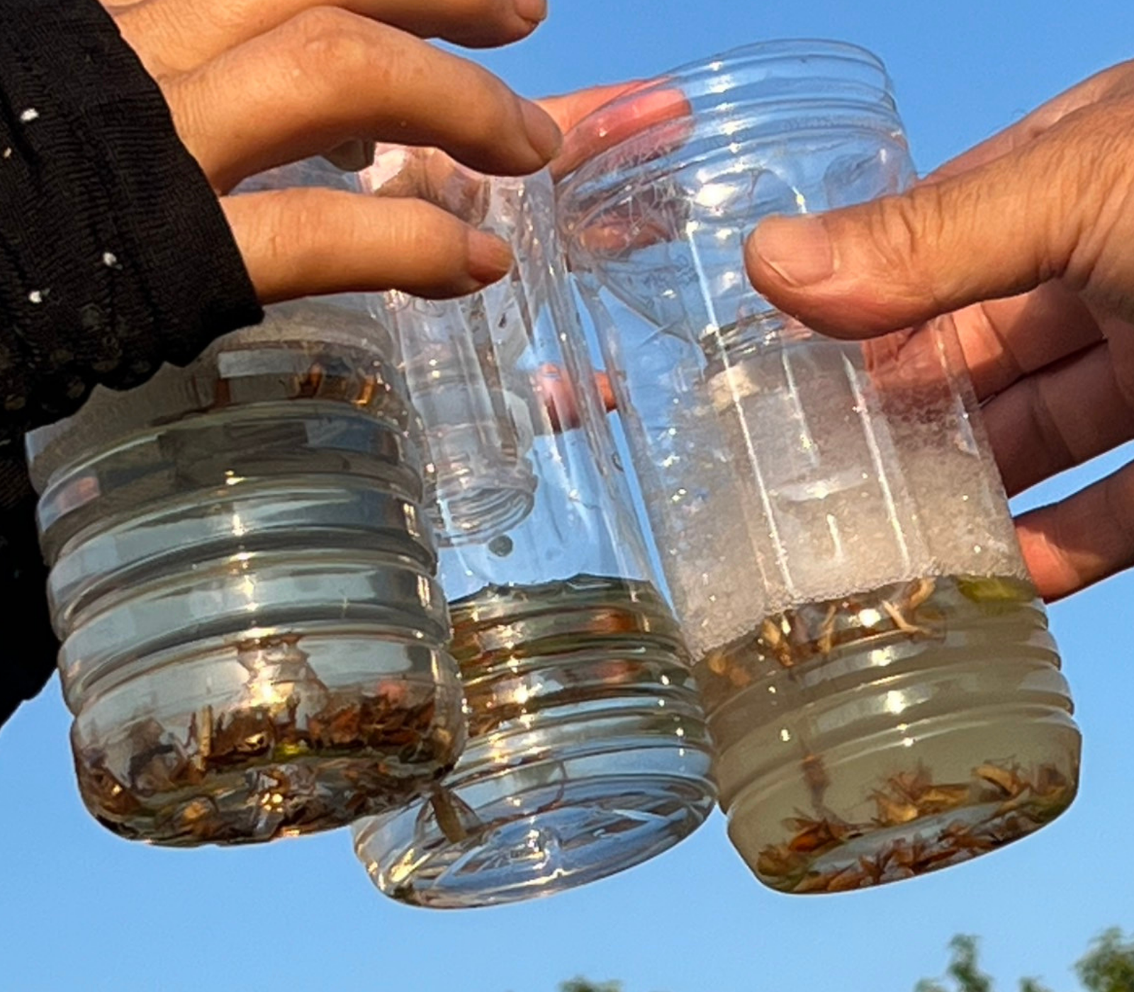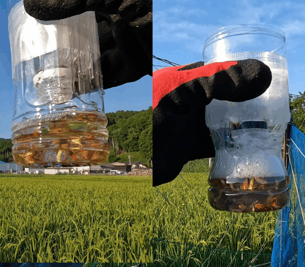 稲の害虫「カメムシ」を捕獲した成果です。この時期穂が出て、花が咲きスクスク育っている稲穂を奴らはチューチュー吸ってしまいます。