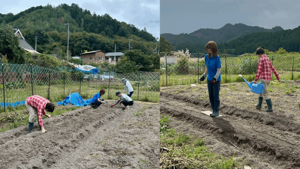 次の収穫に向け、二畝に冬の味覚、大根の種まきをしました。