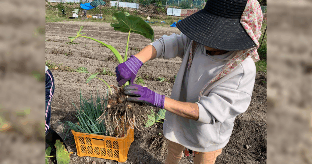 ガレージに転がっていた芽が出た里芋を植えていたものを収穫しました。これだけ成長してくれればまずますというところです。