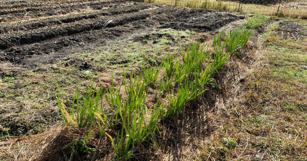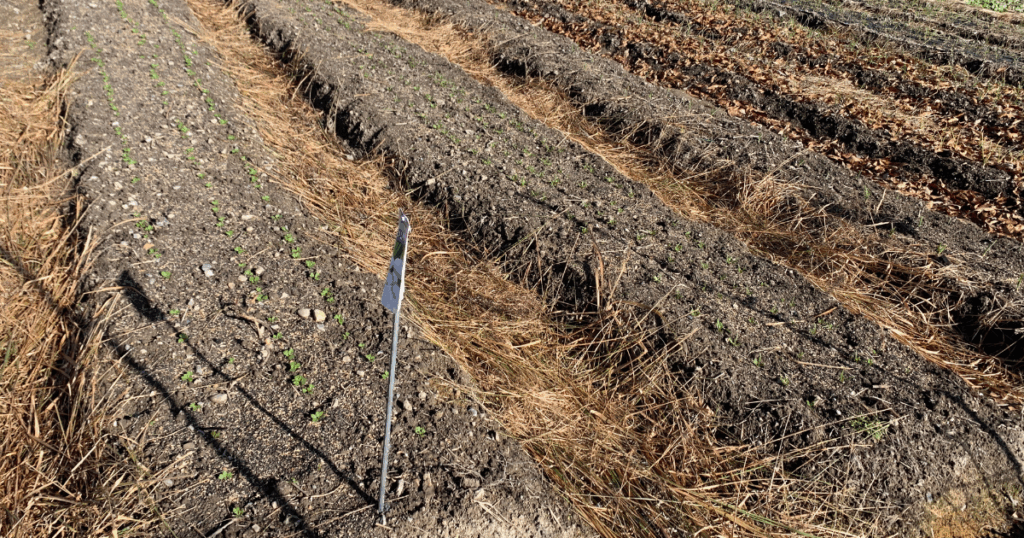 目を凝らしても分かりづらいかもしれませんが、カブとホウレンソウとニンニクです。少しずつ成長してます。