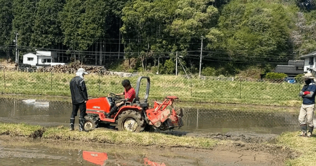 いよいよ代かき本番!トラクターを知り尽くしたメンバーが、今日も頼れるハンドルさばき。新人はその姿を、真剣に見つめています。 この泥が未来の実りに変わる、そんな気がした1日でした。 -