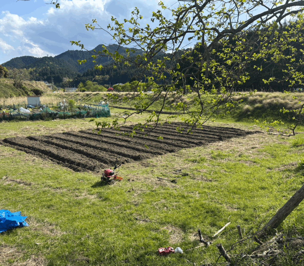 5月4日、しばらく使われていなかった休耕田を整備して、今年はサツマイモを植えることにしました。うまく育つかはまだわかりませんが、季節の移ろいとともに、ゆっくり見守っていきたいと思います。